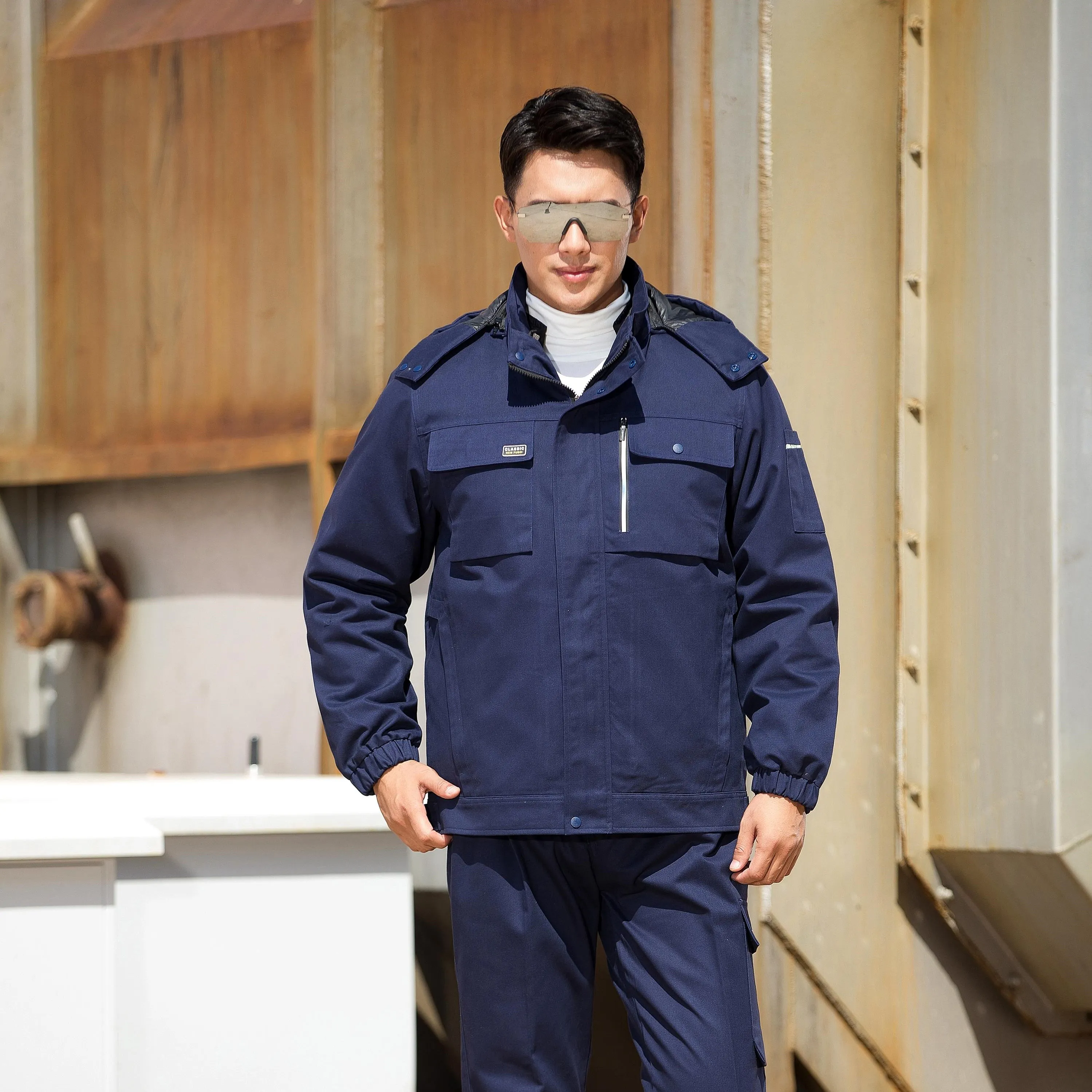Navy blue winter workwear, supporting custom style design, with the option to print text and logos