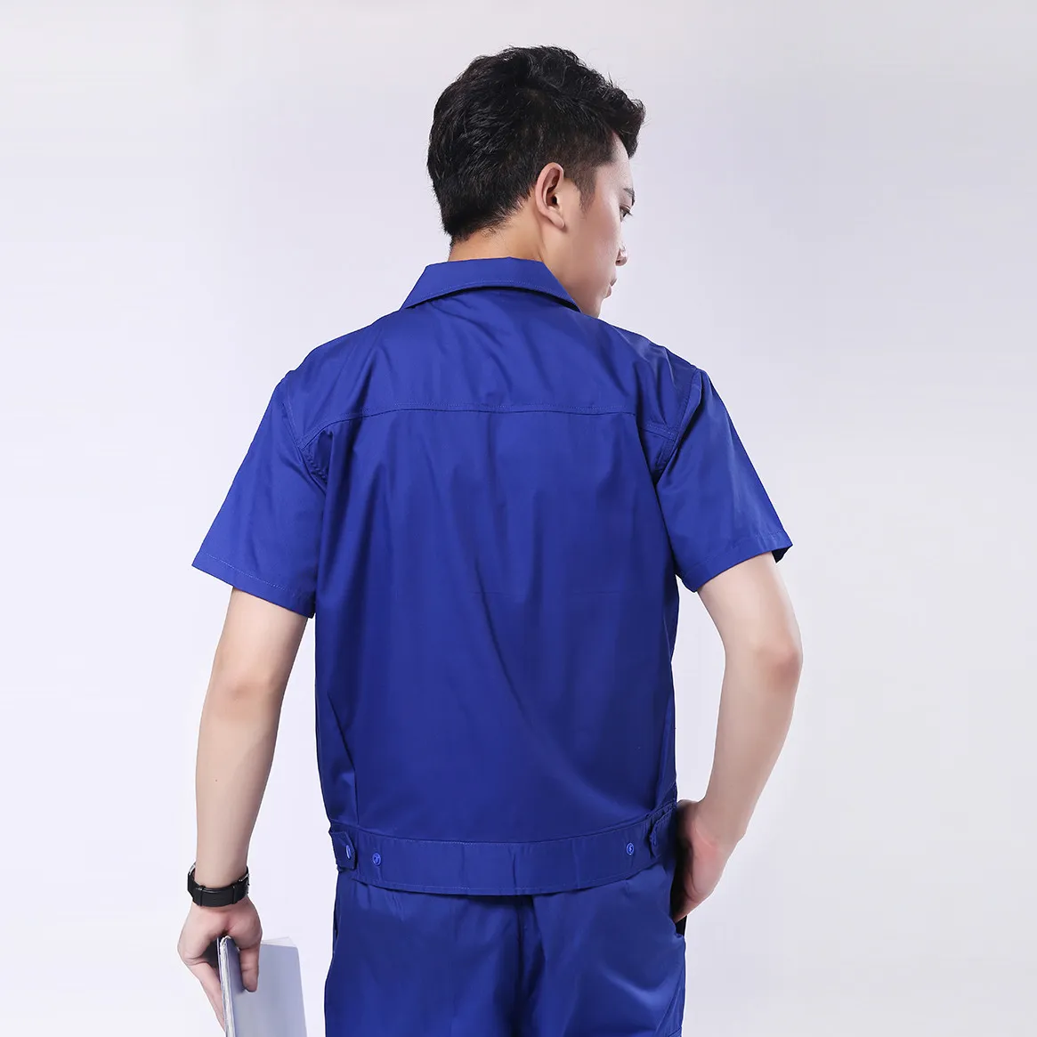 Bright blue summer work clothes, supporting style design customization, and capable of printing words and logos