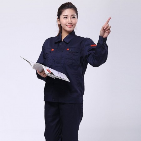 The navy blue workwear from the Spring and Autumn period is durable and resistant to stains, showcasing a professional and capable demeanor.