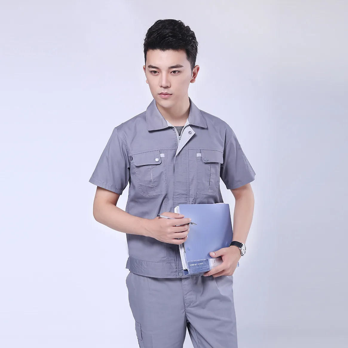 Silver gray short-sleeved workwear, supporting style design customization, and capable of printing words and logos