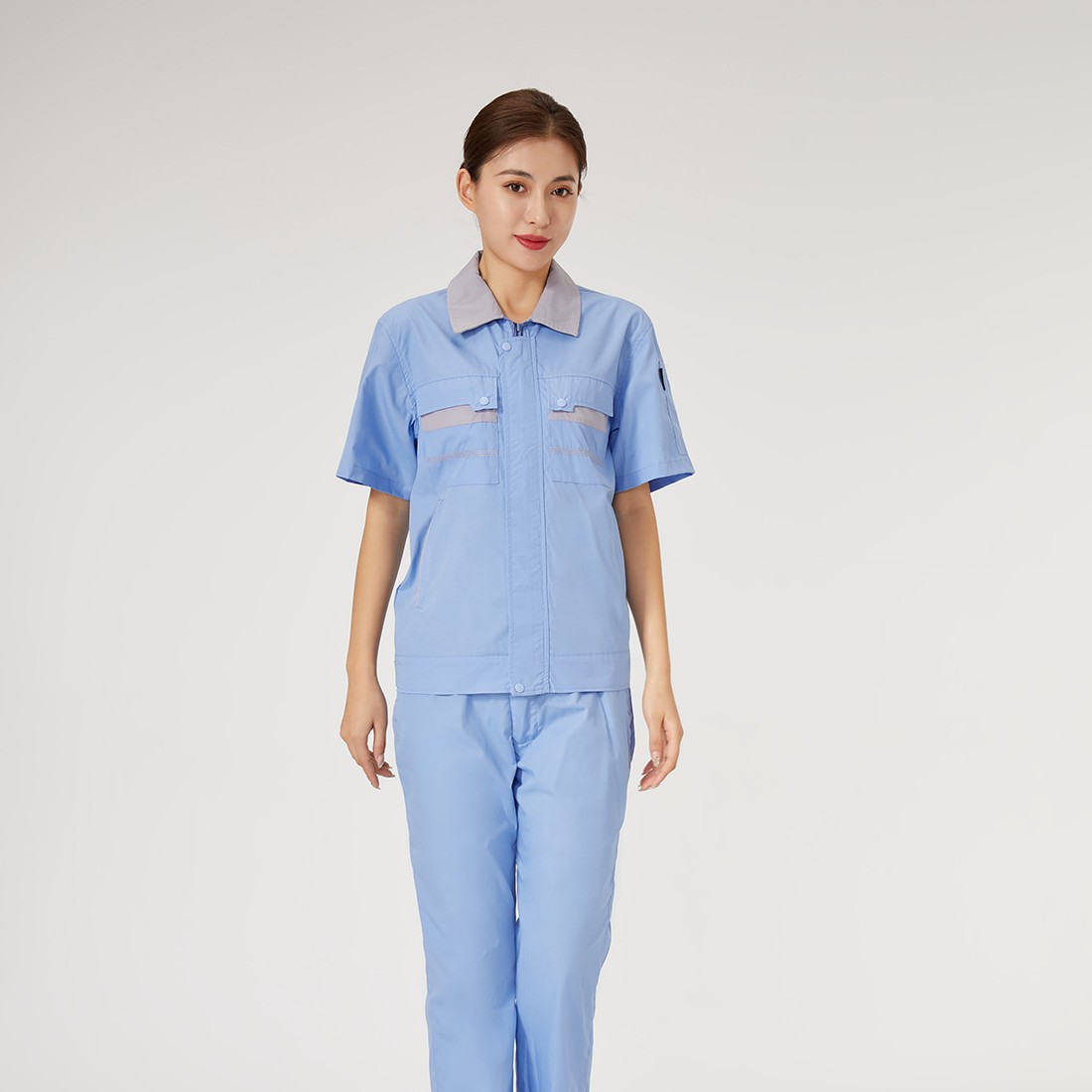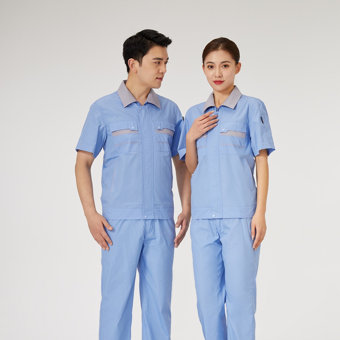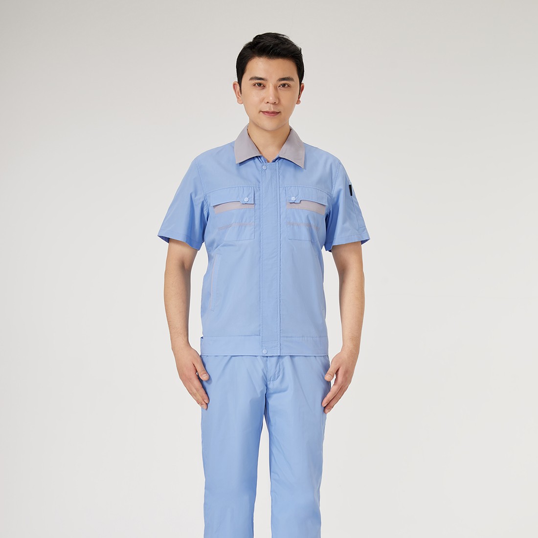 Blue short sleeved workwear, supports customized style design, and can print logos