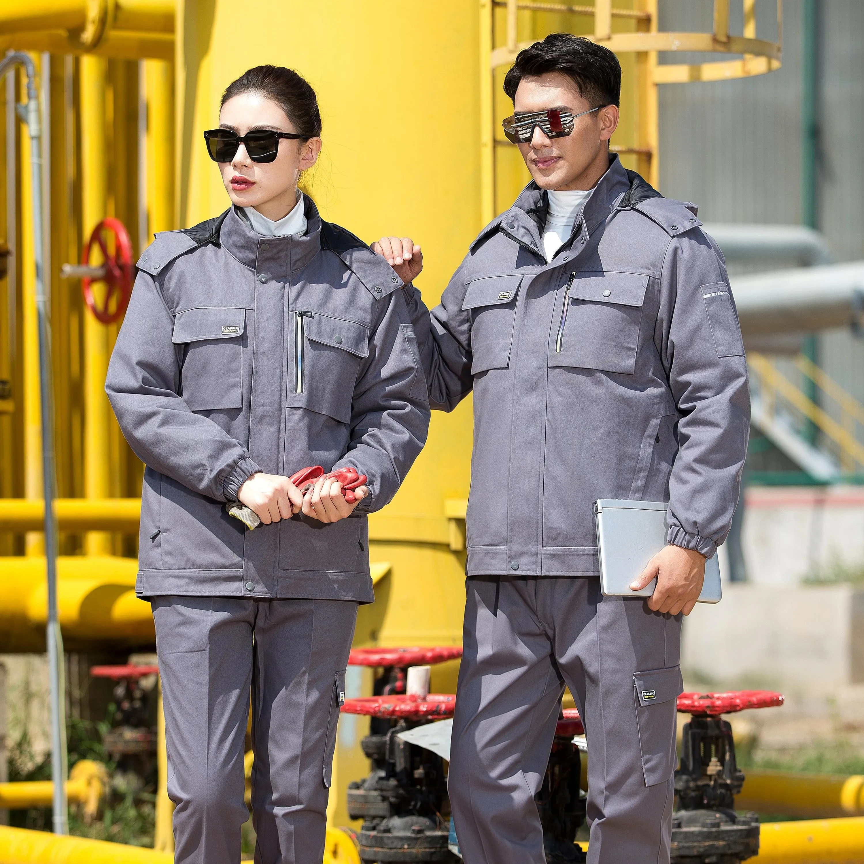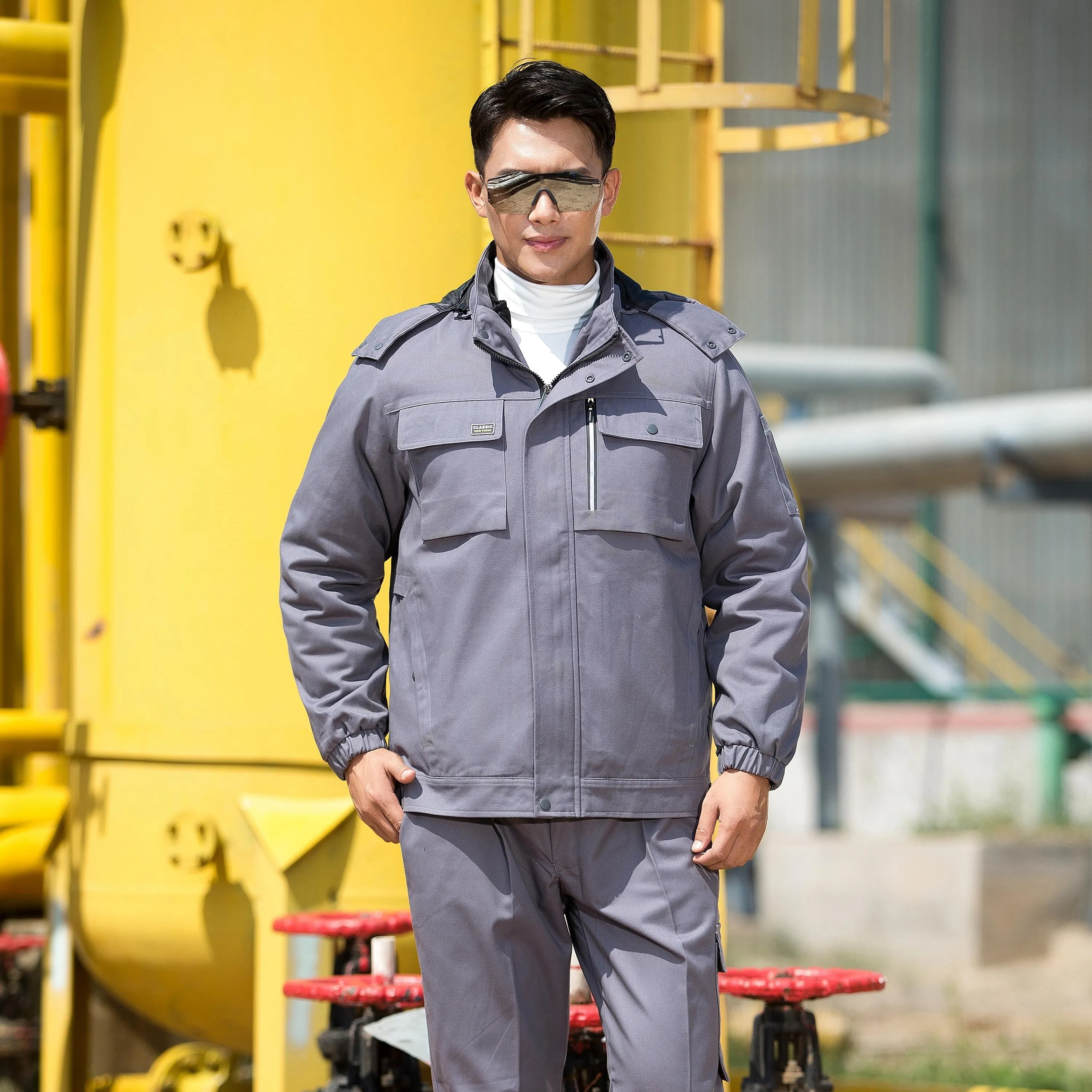 Grey winter workwear, supporting custom style design, with the option to print text and logos
